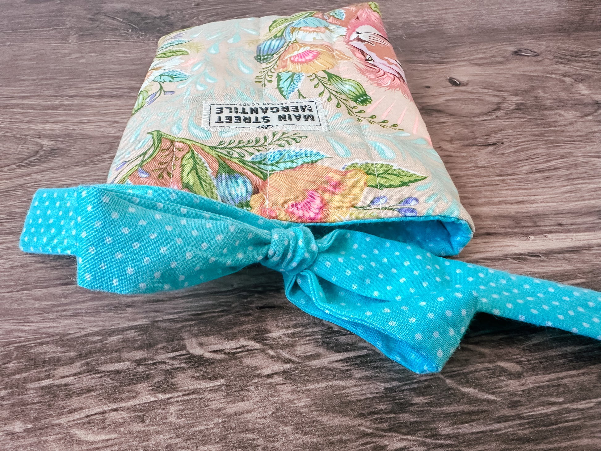 Handmade quilted kindle e-reader sleeve with tie closure. Lined with cotton and has batting for padded protection for your device.