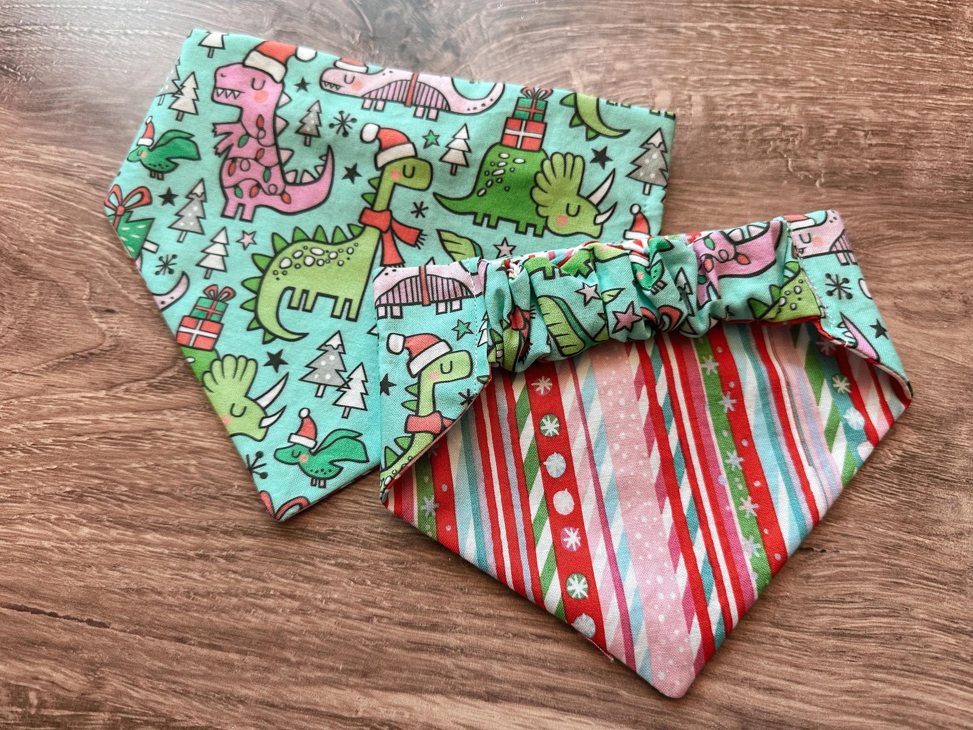 Christmas Dinosaur Holiday Reversible Scrunchie Dog Bandana