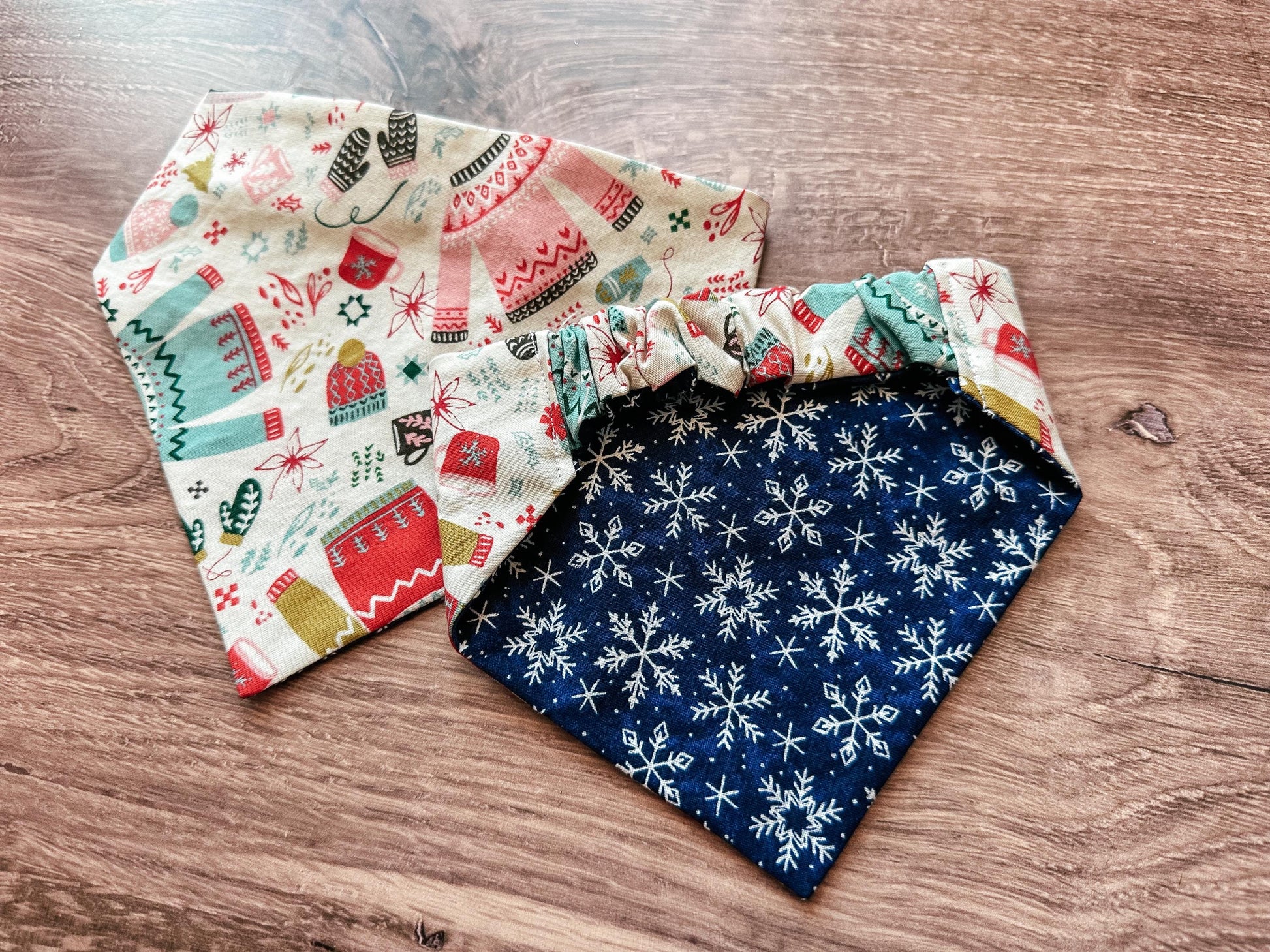 Christmas Sweater and Snowflake Holiday Reversible Scrunchie Dog Bandana