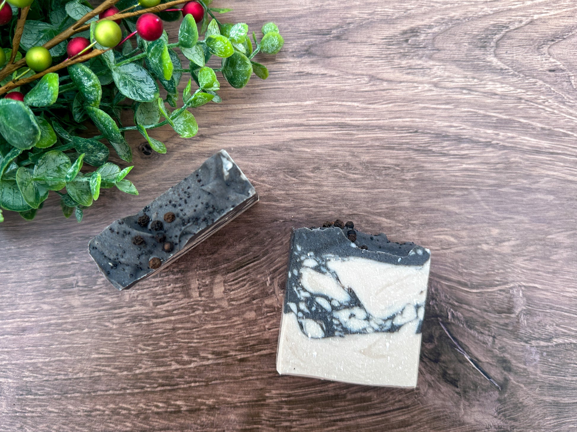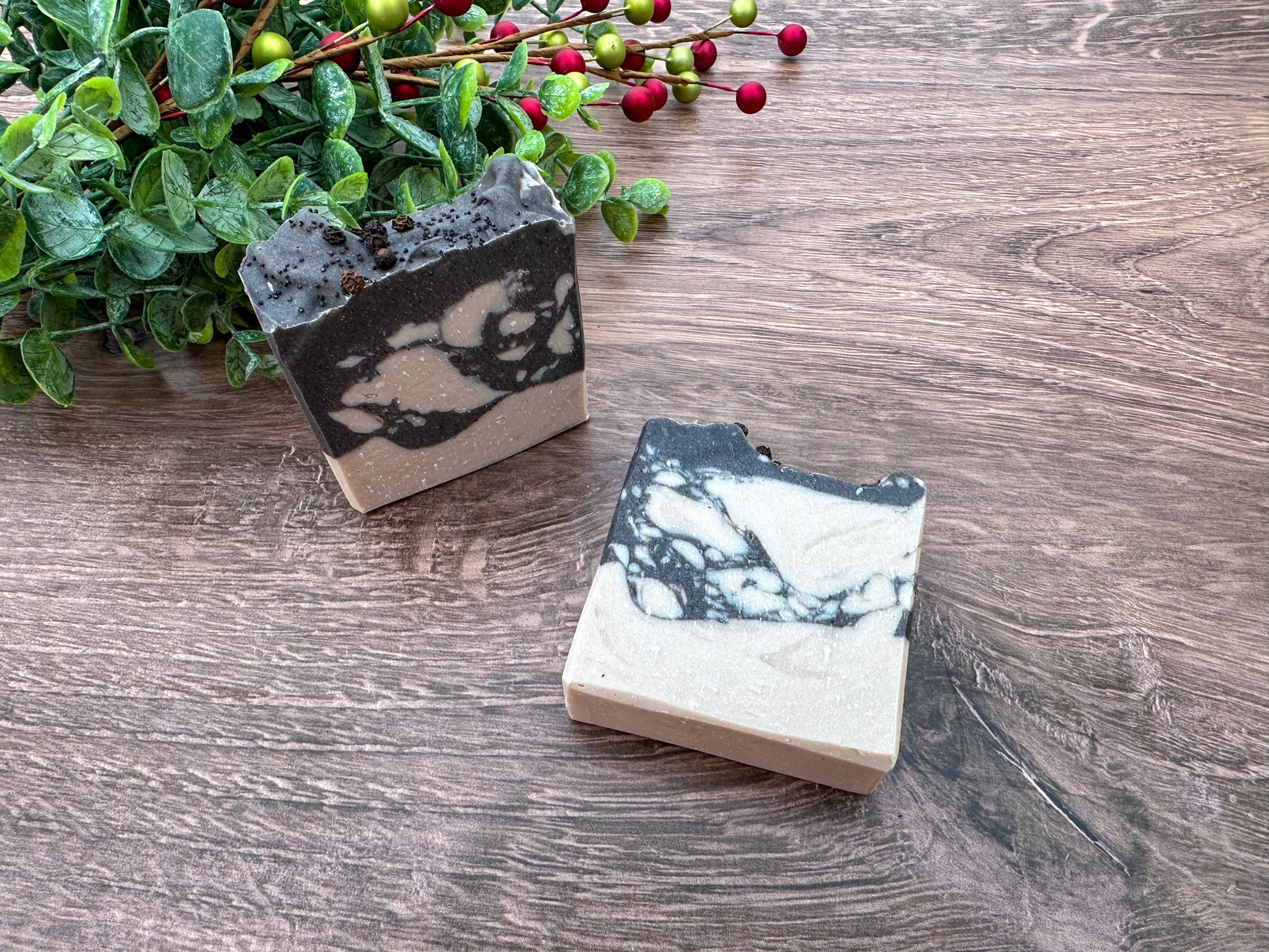 Our natural handmade soap bar is made with water, shea butter, coconut, sunflower, olive, castor oil and kaolin clay to leave your skin deeply cleansed and hydrated. Our soap is handmade in small batches using a cold-process method to retain the purity and potency of the natural ingredients. Natural glycerin increases skin hydration and prevents dry skin.