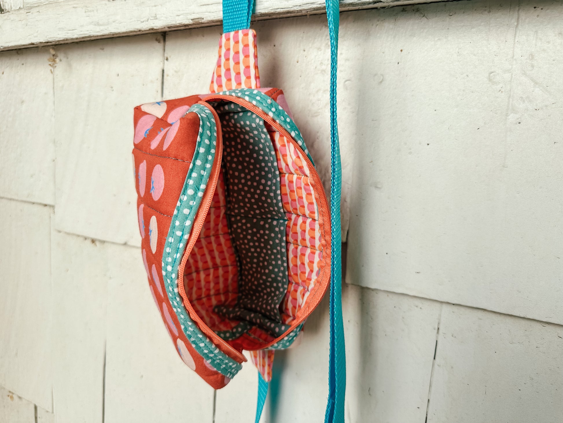 This crossbody bag features adorable red tomato fabric from Ruby Star Society, and pink and white interior with 2 small pockets - which every girl needs. The nylon strap is sturdy and adjustable. Generally fits someone S - XL. Please reach out if you'd like a custom size.